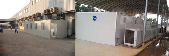 庫氏皮草20臺蒸發(fā)型冷氣機安裝完畢并正常運行,_高溫熱泵烘干皮草安裝完畢并正常運行。